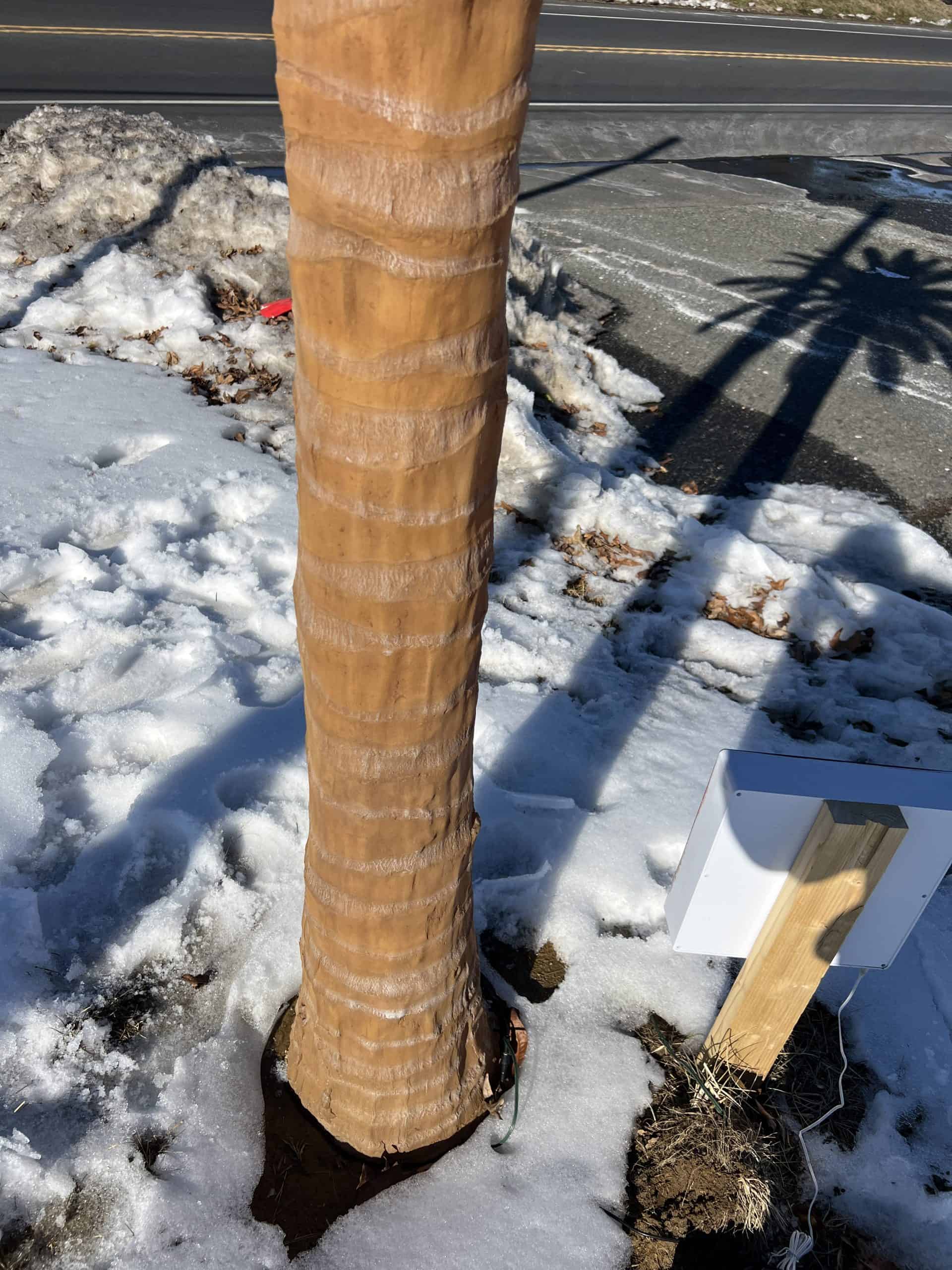 Lighted Outdoor Artificial Palm Tree (Natural Trunk during the Daytime)
